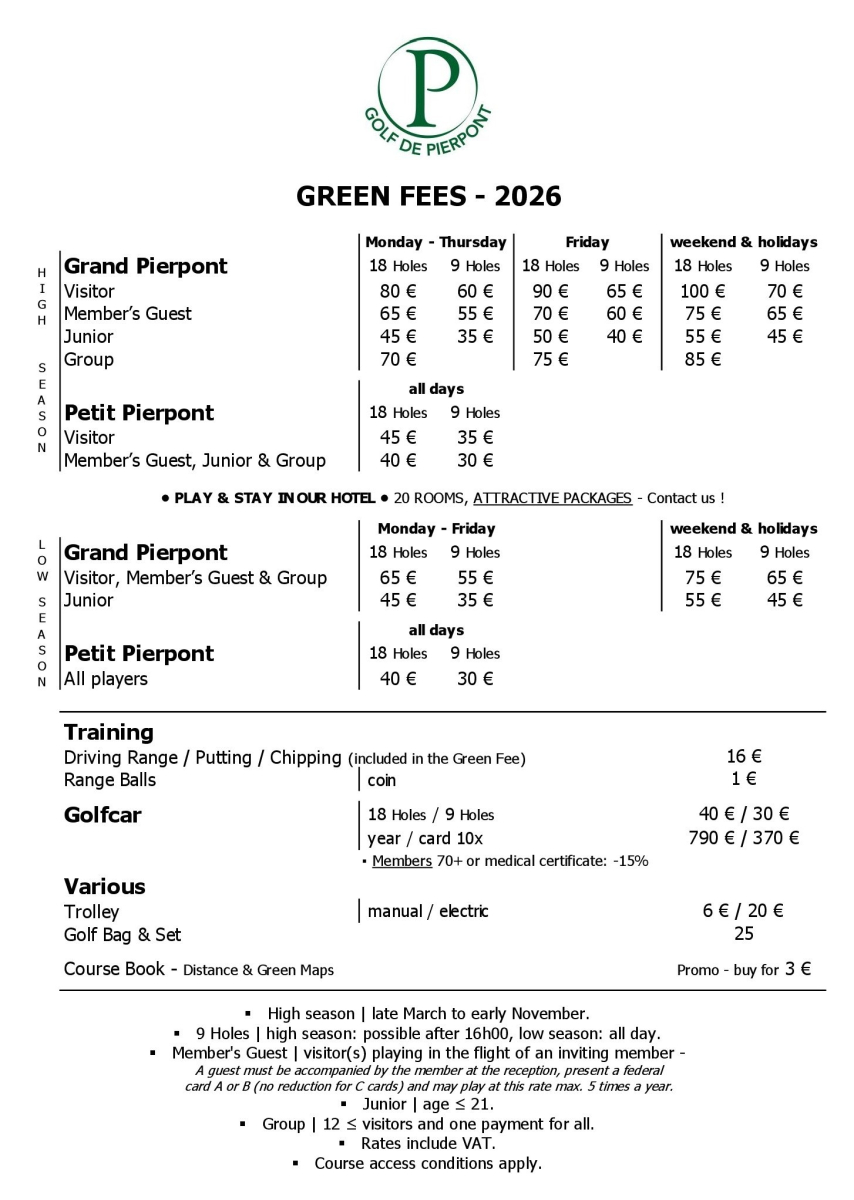 • If during a check on the Course or Practice a visitor cannot present a greenfee voucher without a valid reason, a 100€ supplement is applied.